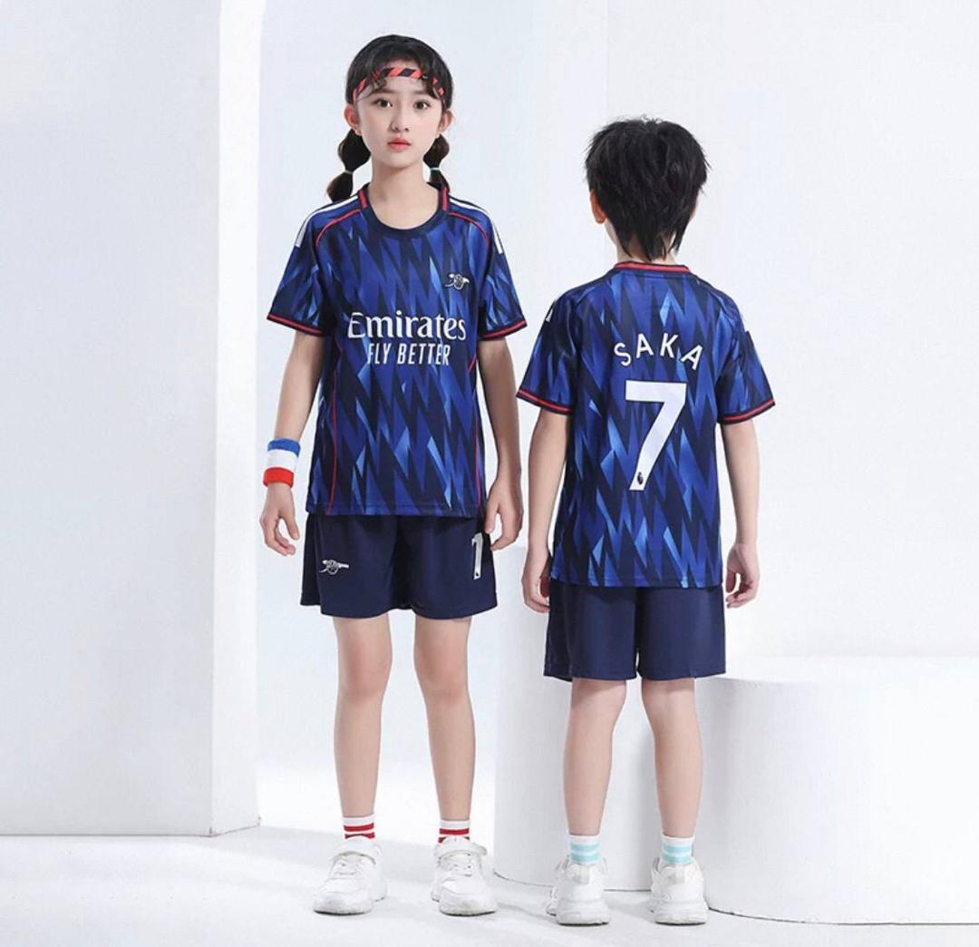 تیشرت و شلوارک ساکا آرسنال – لباس دوم آبی ترکیبی از کیفیت بالا، راحتی و استایل اسپرت منحصر به فرد است.