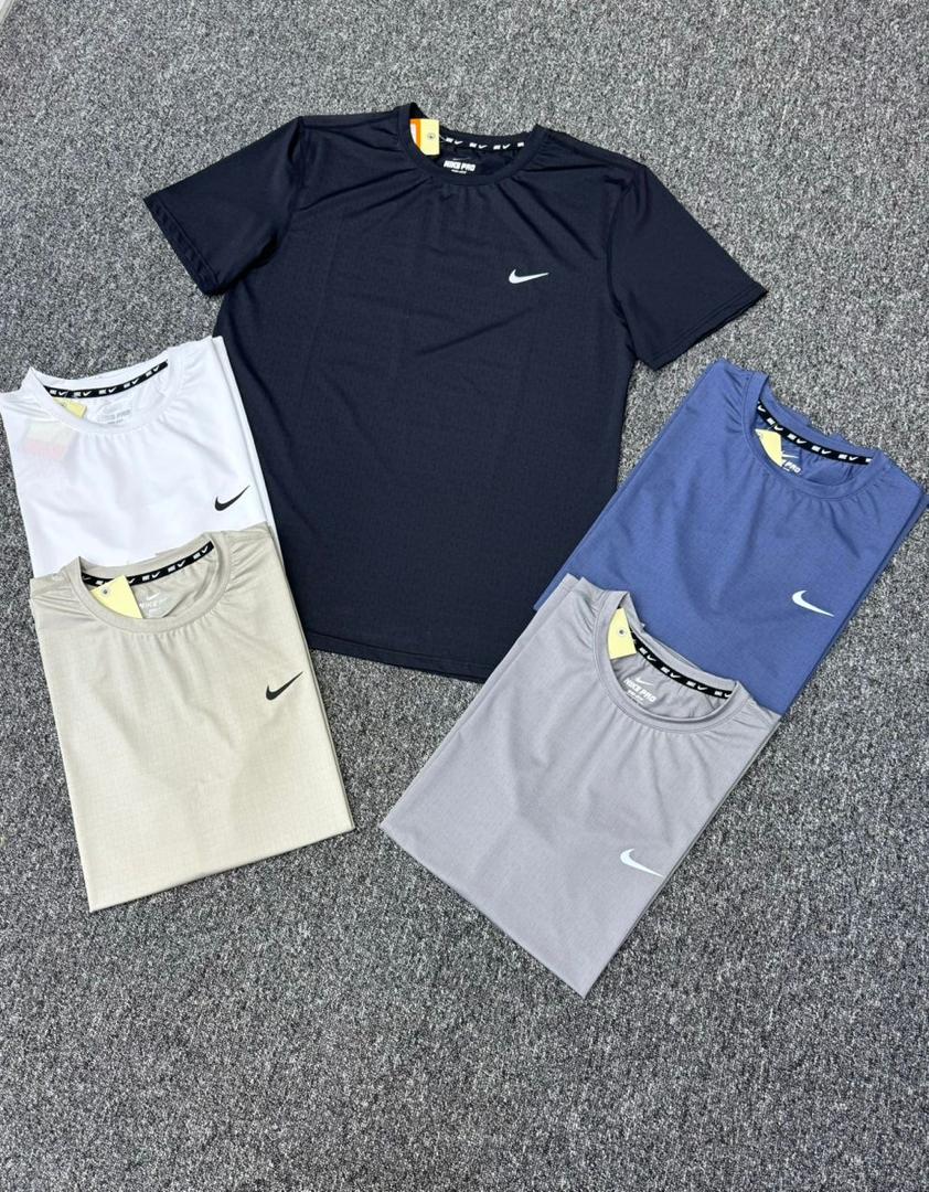 طراحی این تیشرتها معمولاً یقه گرد و فیت استاندارد یا نیمه جذب است که راحتی و آزادی حرکت را در حین ورزش تضمین میکند. لوگوی نمادین نایک (Swoosh) در جلو یا پشت تیشرت، ظاهری ساده اما حرفهای به آن میدهد.